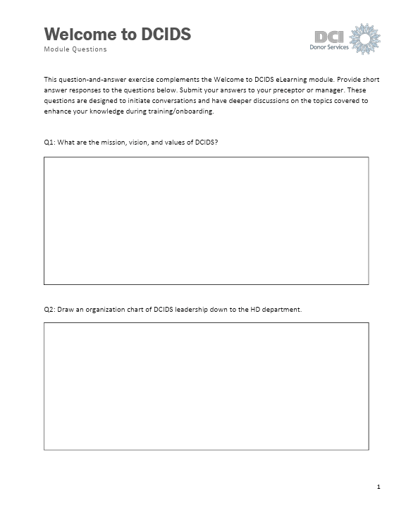 The Solution: A comprehensive, structured, sustainable, consistent, and targeted onboarding experience for the Hospital Development team. The experience is a series of 4 e-learning modules with self-paced knowledge checks/activities and worksheets that must be submitted and discussed with preceptors/managers.