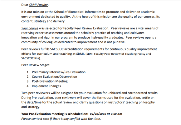 Developed the follow up form once a course and faculty have been evaluated to ensure that improvements are implemented.
